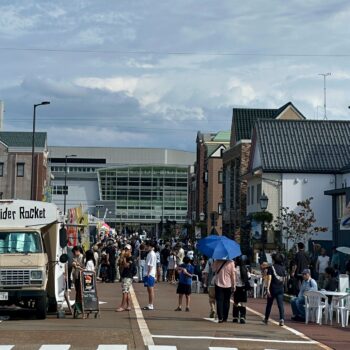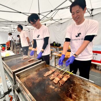 また、れんが花道通りや駅前市民公園では、地元グルメを集めた飲食ブース「MEAT meets SWEETS STREET」も登場し、小松YEGもブースを出店。メンバーが一丸となって飲食物を提供し、来場者との交流を楽しみながら大きな賑わいを見せました。